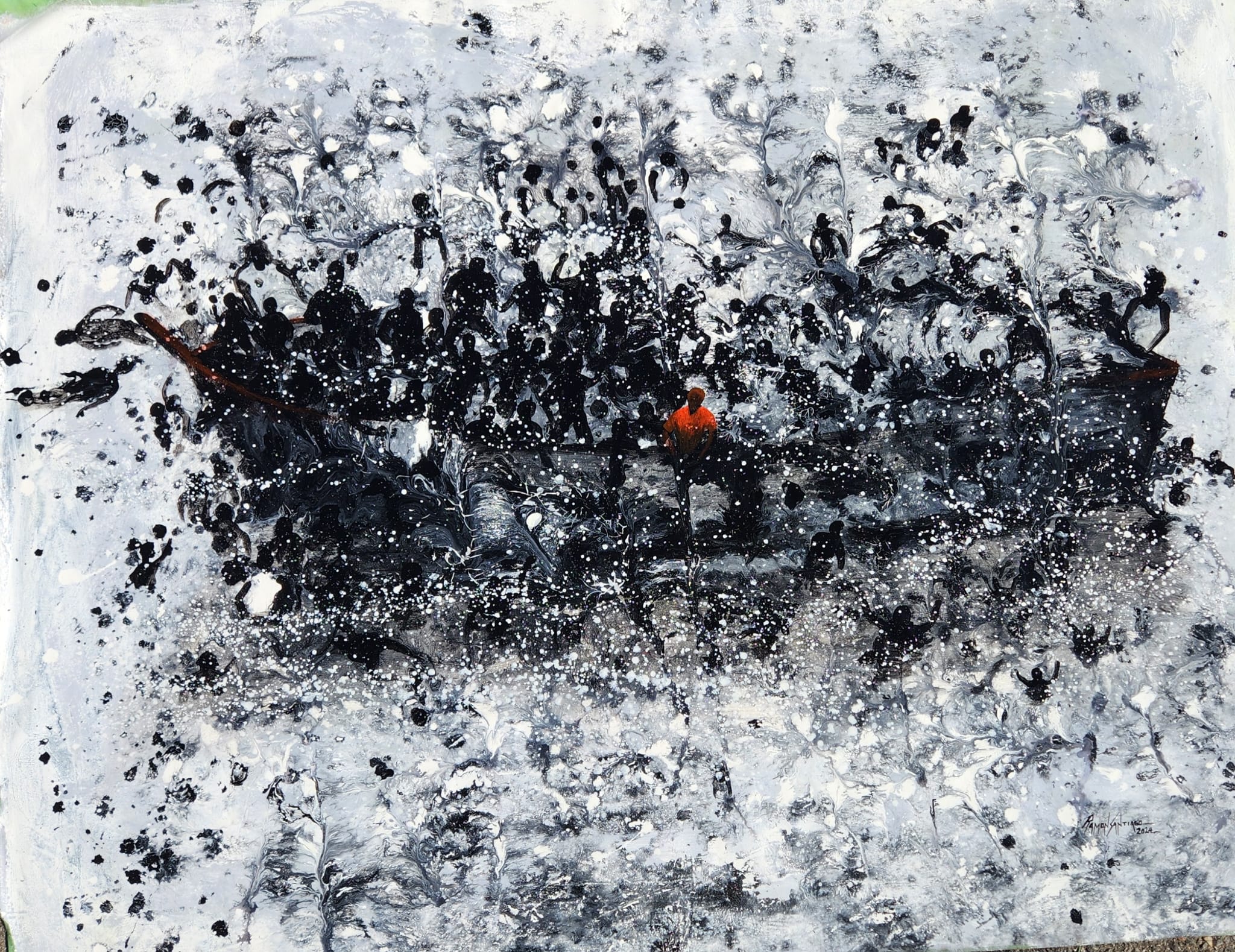 El destacado artista pictórico autodidacta, Ramón Santiago, participará este día 19 del mes de julio en la exposición colectiva plástica denominada “Diáspora”, con varias obras de la Serie Éxodo titulada *Desplazamiento Forzozo*, en la que deja plasmado como personas o grupos de personas se ven obligada a emigrar o abandonar sus hogares habituales de residencia; como resultado de un conflicto armado, situaciones de violencia generalizada y violación de los derechos humanos.