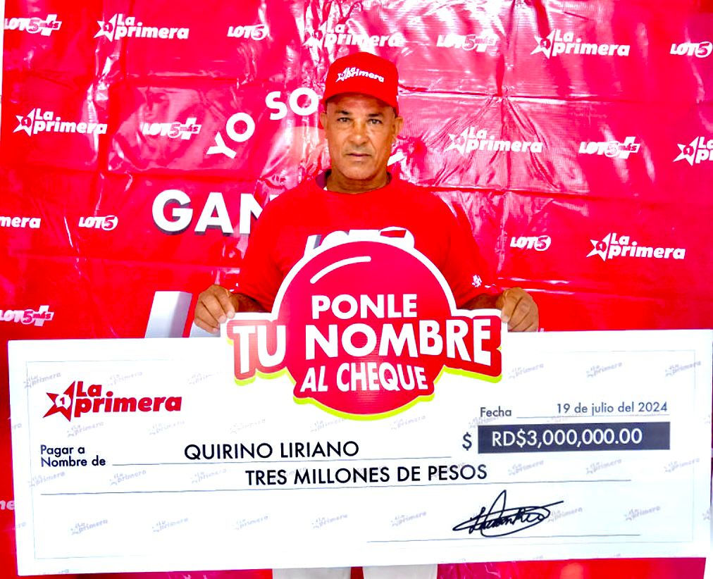 LAS TERRENA, SAMANA. – Quirino Liriano, Albañil de 60 años, se ha convertido en el nuevo ganador de RD$3 millones de pesos del popular juego Loto 5 de La Primera.