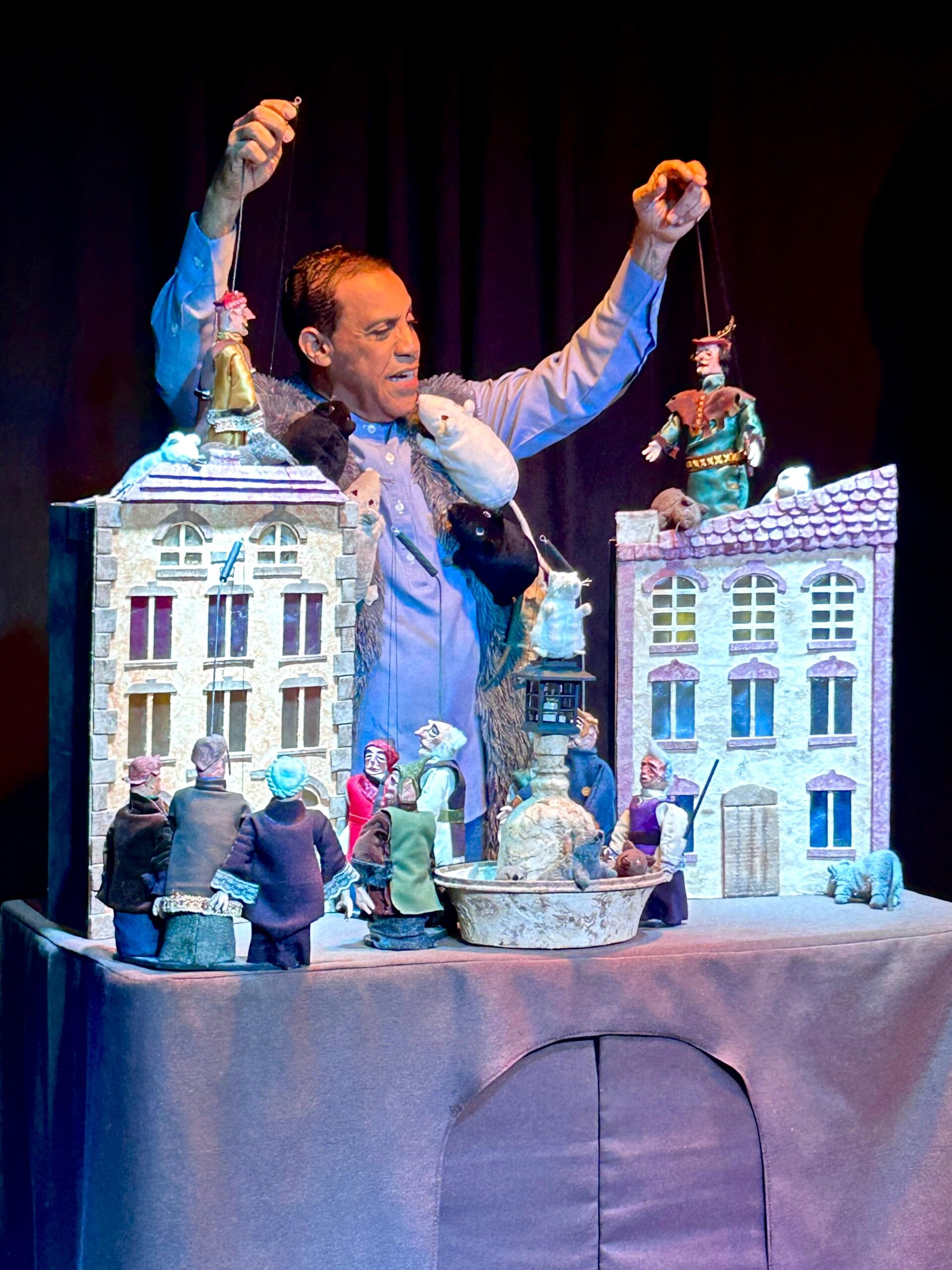 Agregó: «No sabría decir qué fue lo que más me entusiasmó, si la bella escenografía llena de detalles, simulando una aldea del siglo XI; si los títeres bellamente diseñados y construidos para esta versión, con un elegante vestuario de esa época… los gatos, los ratones, la ropa del narrador con los roedores, y, por supuesto, el flautista».