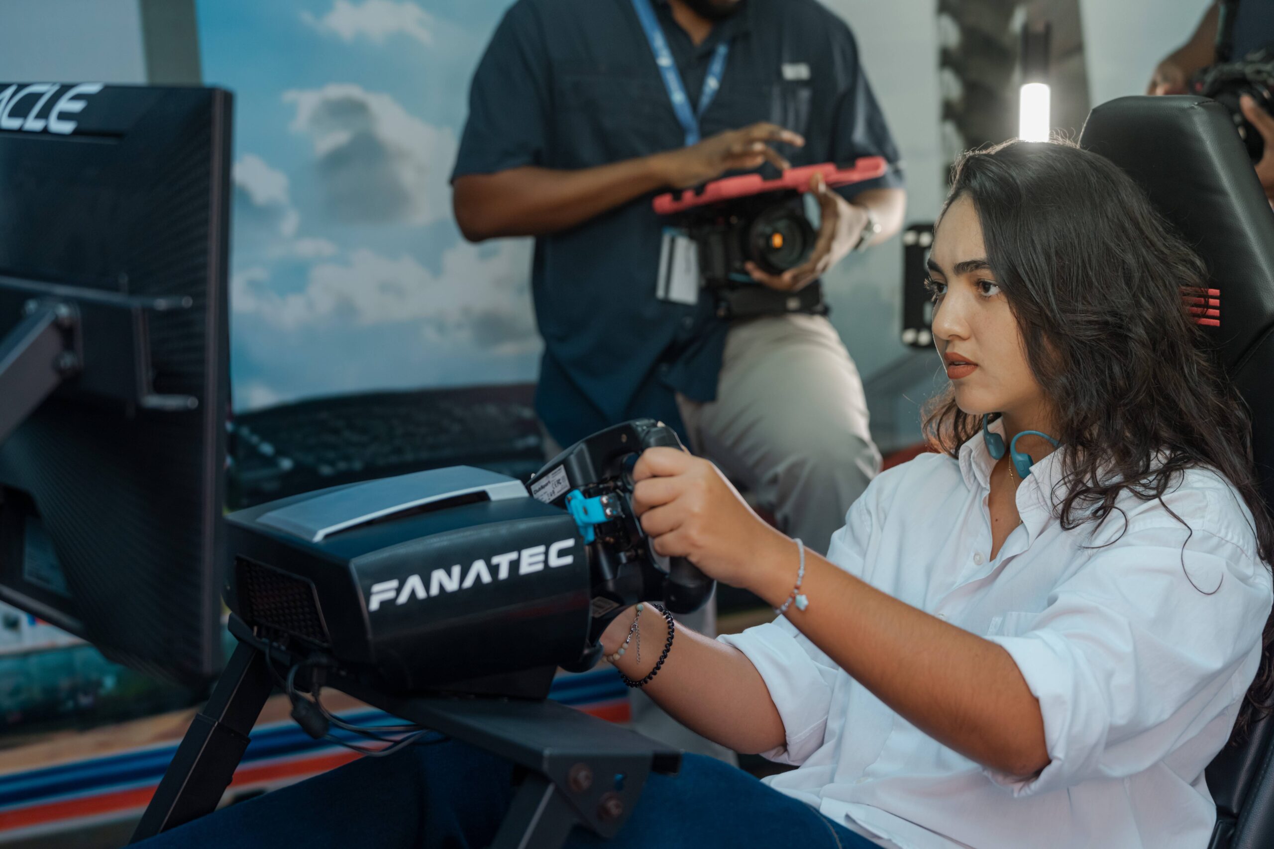 Los rugidos virtuales del motor y la sensación de velocidad envolvieron a los participantes, quienes compitieron apasionadamente por obtener la mejor puntuación. Los tres más rápidos se llevaron a casa una gorra original de Oracle Red Bull Racing.