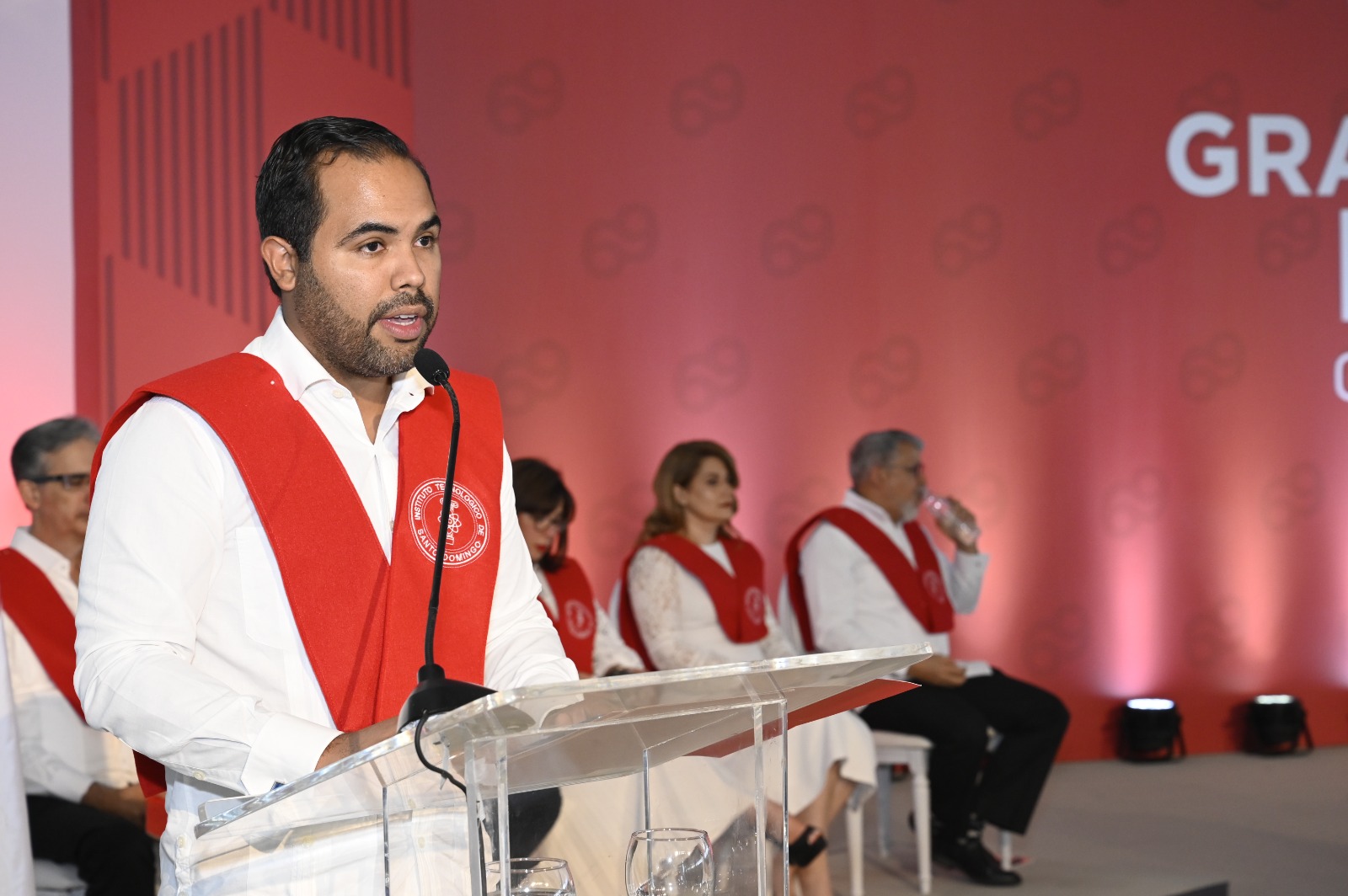 El orador invitado de la ceremonia fue Luis Valeirón, director de Ingeniería para Eaton Corporation en su división de Bussmann y egresado de Ingeniería Industrial del INTEC (2007), quien compartió un inspirador mensaje sobre la perseverancia, la resiliencia y la esperanza. En su discurso, recordó su propio camino como estudiante del INTEC y cómo enfrentó retos académicos que moldearon su carrera profesional. Destacó la importancia de aprender de los fracasos y de mantener el entusiasmo a lo largo del proceso, alentando a los graduados a perseguir sus pasiones y a nunca conformarse con lo mediocre.
