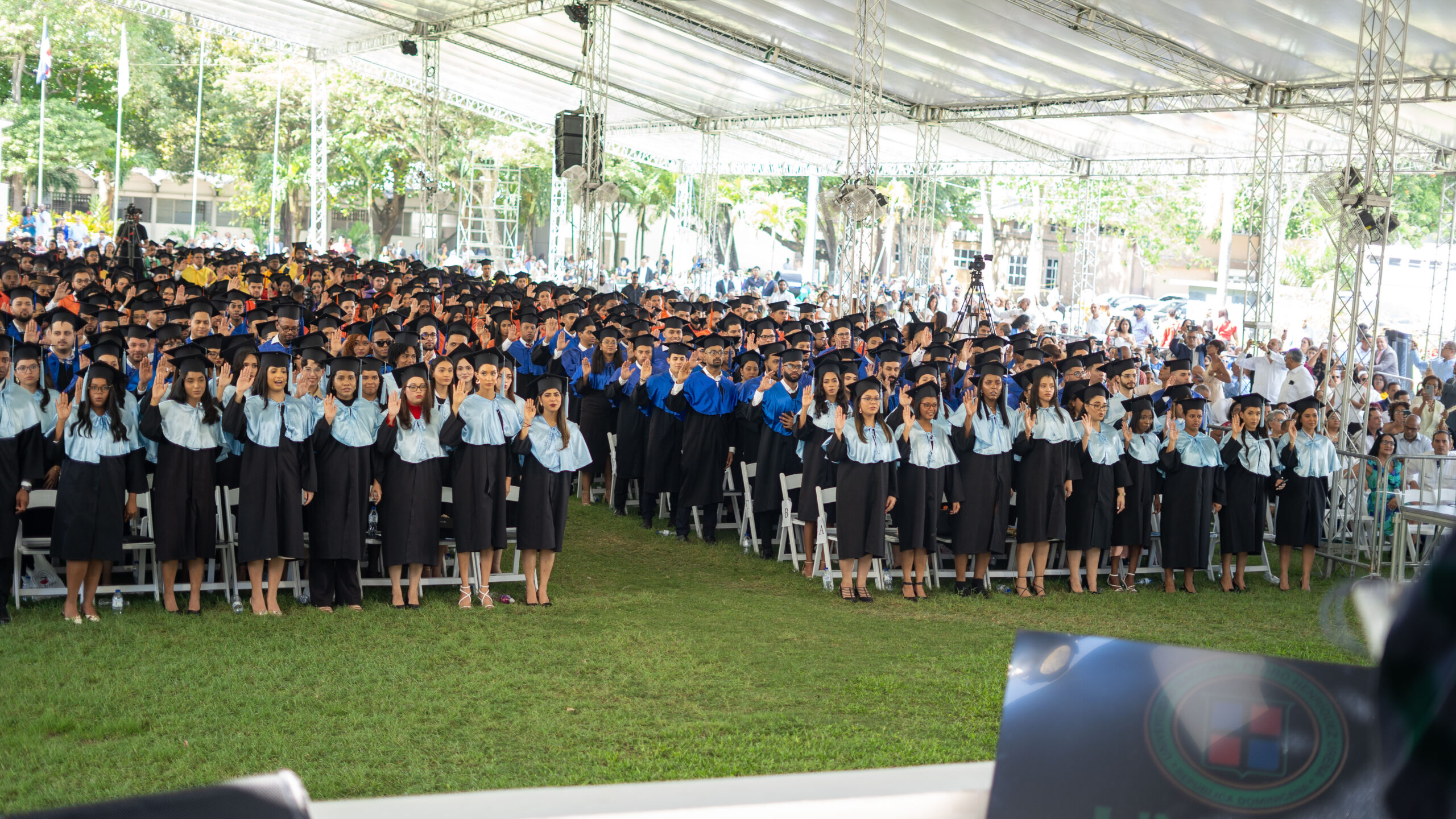 En representación de los graduados, compartieron emotivas palabras la doctora en Medicina Nathali Mariel Jiménez Duval, del recinto Santo Domingo; y la licenciada en Derecho Alfa Esther Hilario Caba, del recinto La Vega. Ambas destacaron por haber logrado el mayor índice académico en sus respectivos recintos y carreras.