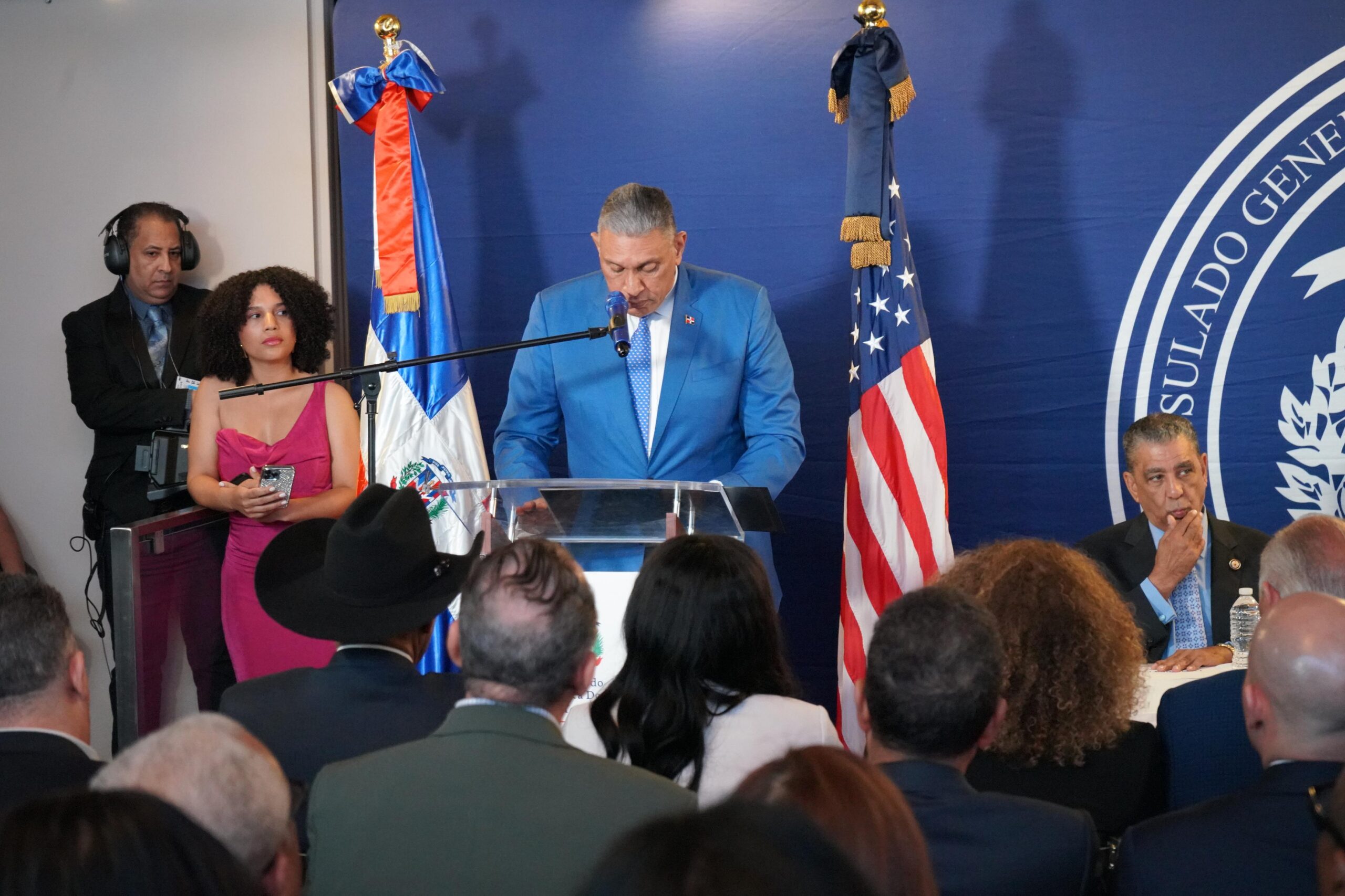 Entre las personalidades presentes se destacaron los cónsules José Santana (Nueva Jersey) y Lourdes Herrera (Filadelfia); Sandra Harris, vicepresidenta de la Universidad de Columbia; John Sánchez, director del INDEX; y Neftalí Fuentes, asesor del Poder Ejecutivo para Dominicanos en el Exterior. También estuvieron presentes los diputados de ultramar Norberto Rodríguez, Kenia Felicia Bidó, Cirilo Astacio Moronta, Adelis de Jesús Olivares, Julio César López, Angélica Natividad Nova y Edwar Enrique Cruz, así como el diputado por la provincia María Trinidad Sánchez, Stalin Vásquez.