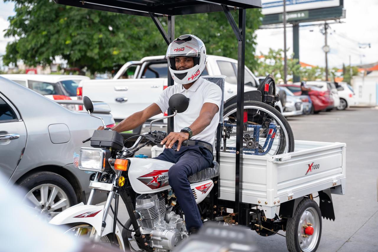 Santo Domingo, R.D. -La Dirección de Proyectos Estratégicos y Especiales de la Presidencia (Propeep) continúa impulsando acciones que transforman vidas, este sábado el director de esta institución, Robert Polanco, entregó un motor de tres ruedas a Luis Alberto Sosa Martínez un joven de 22 años con discapacidad en sus piernas, residente en La Guáyiga.