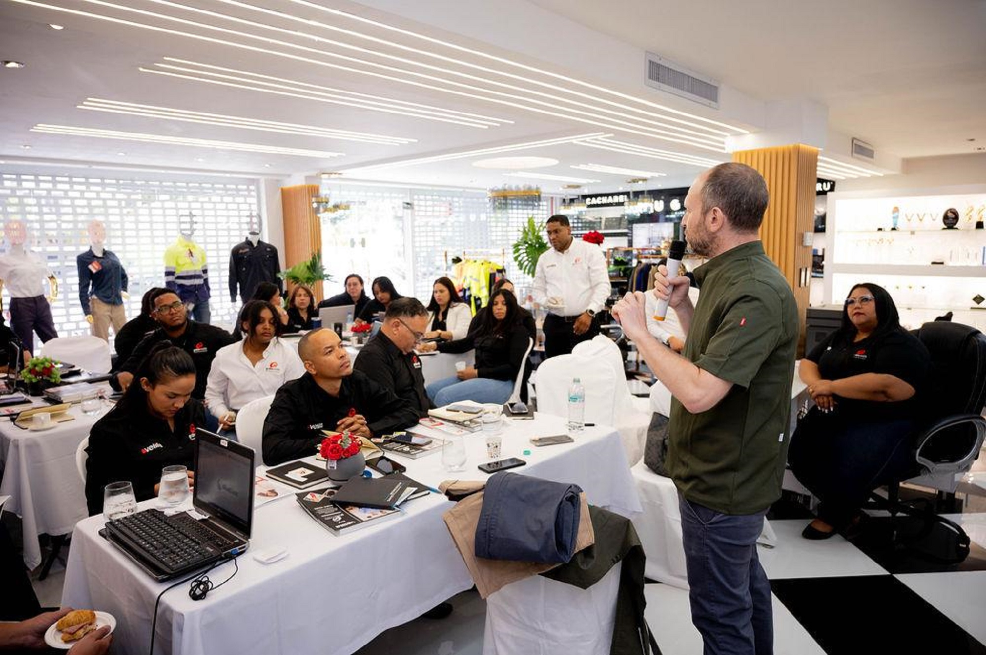 Durante esta enriquecedora jornada, el equipo de todas las sucursales de Grabo Estilo, así como el personal gerencial, recibió entrenamiento especializado sobre las últimas líneas de productos que incorporan tecnología textil de vanguardia, diseñadas para maximizar rendimiento, seguridad y estilo.