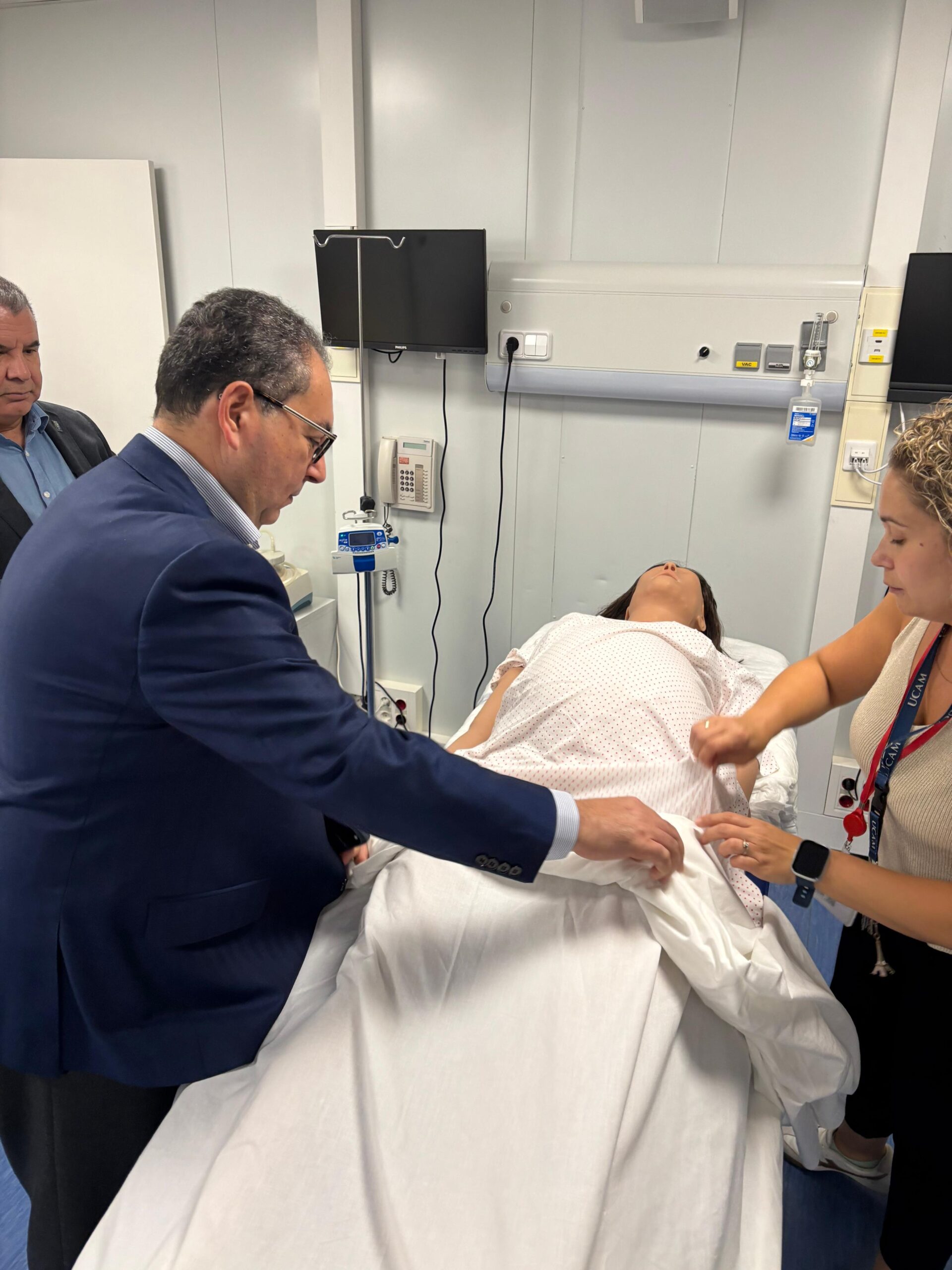 Como parte de la jornada en la UCAM, el titular del SNS visitó el moderno Laboratorio de Simulación de la universidad y realizó un recorrido general por el campus.