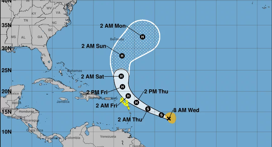 La agencia federal, con sede en Miami, ha emitido una vigilancia de tormenta tropical para Antigua, Barbuda, Anguila, San Cristóbal, Nieves, Montserrat, San Bartolomé, San Martín, San Martín (parte neerlandesa), Saba, San Eustaquio y Guadalupe.