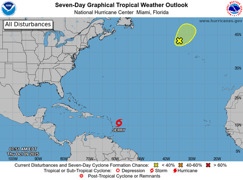 Por su avance hay una zona de vigilancia de tormenta tropical en las islas caribeñas de Antigua, Barbuda, Anguilla, St. Kitts, Nevis y Montserrat, entre otras, pero el NHC advirtió de que las “Islas Vírgenes Británicas y de los Estados Unidos deben monitorear el progreso de Jerry«.