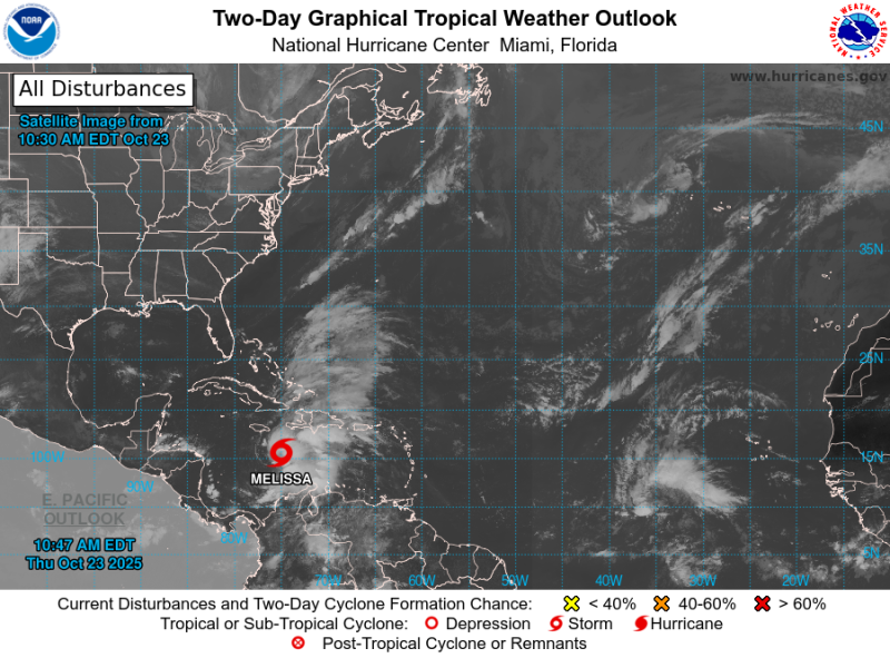 El fortalecimiento de la tormenta tropical Melissa, que se convertiría en huracán mayor el fin de semana, provocará lluvias en Puerto Rico, República Dominicana, Haití y Jamaica, además de ser de interés para Cuba, indicó este jueves el Centro Nacional de Huracanes (NHC, en inglés) estadounidense.