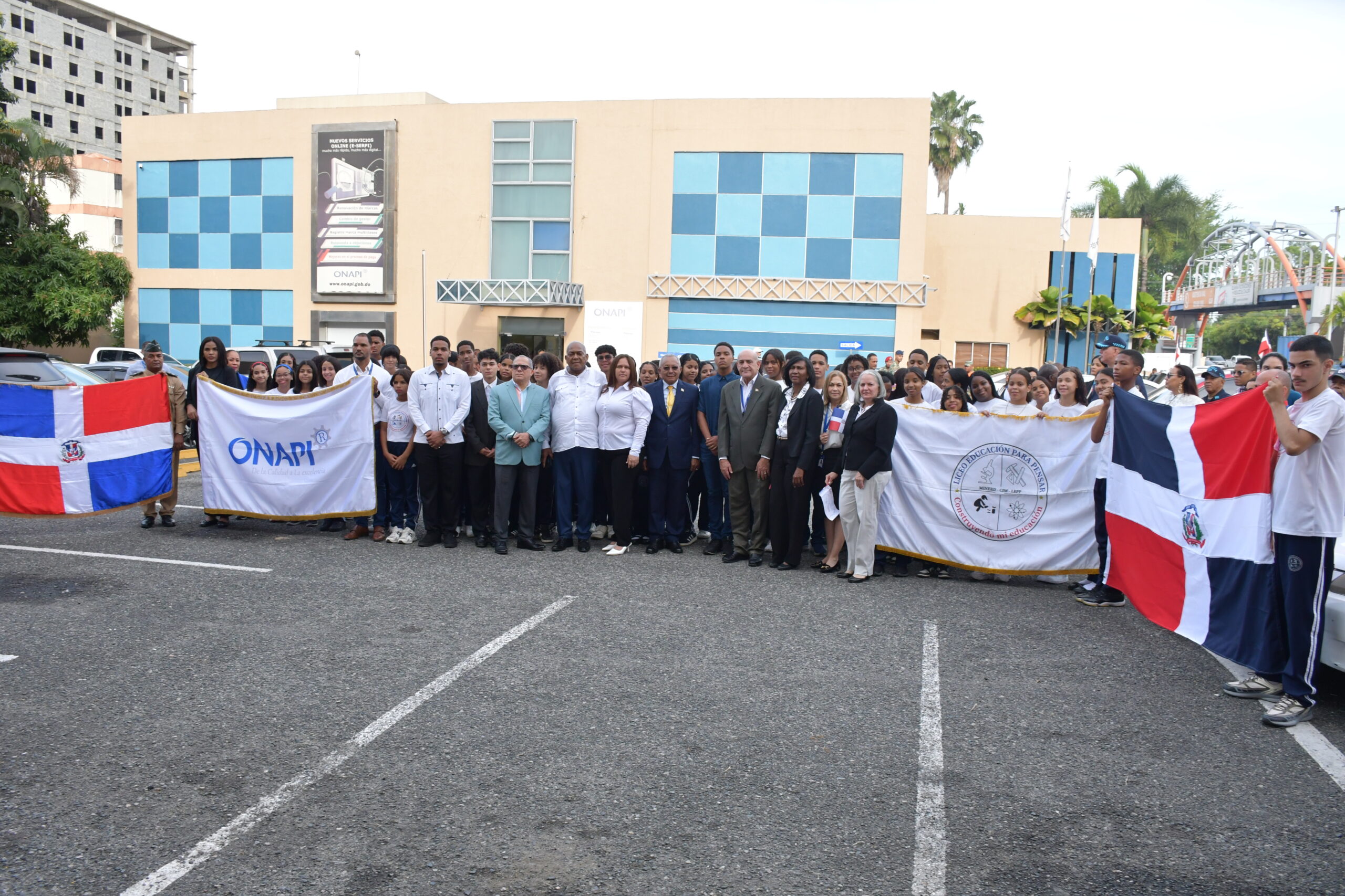 Santo Domingo, D.N – La Oficina Nacional de la Propiedad Industrial (ONAPI) realizó un acto solemne de izamiento de la bandera nacional, al conmemorarse los 182 años de su independencia, acompañado de un homenaje cívico con la participación de los estudiantes del Liceo Educación para Pensar, con el propósito de promover los valores nacionales y la educación cívica.